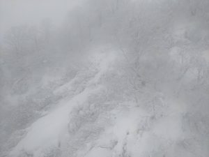 雪はふわふわだけどゴーグルが曇って使い物にならない。