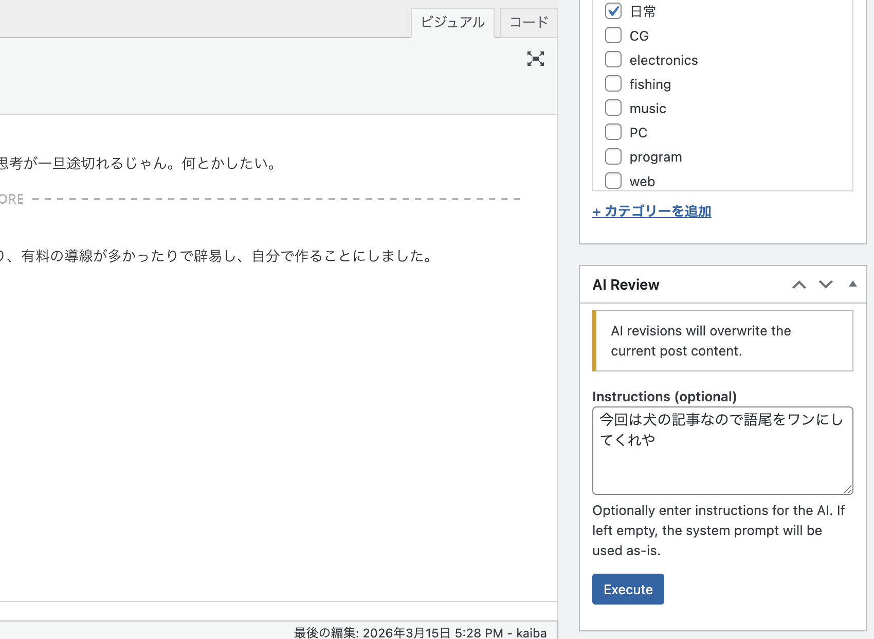 WordPressのプラグインを作ったよ。記事本文をAIになおしてもらえる AI Review!