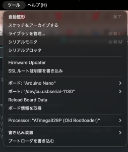 - プロセッサは ATmega328p(old bootloader)を使用する必要があった
